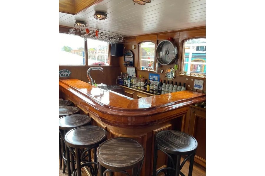 Benedendeks vindt u een royale, lichte salon met comfortabele zitplaatsen en een sfeervolle bar. De indeling maakt het eenvoudig om met de hele groep samen te komen voor een lunch, borrel of presentatie. Dankzij de open en uitnodigende inrichting voelt het schip als een drijvende ontmoetingsplek waar gesprekken vanzelf op gang komen. De professionele kombuis maakt uiteenlopende cateringmogelijkheden mogelijk: van koffie met gebak tot een uitgebreide lunch of borrelarrangement. Alles wordt afgestemd op de wensen van uw gezelschap en de aard van uw evenement.