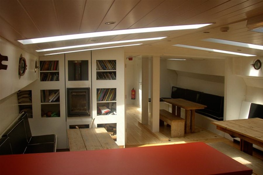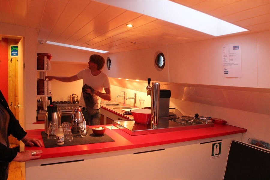 Onder dek bevindt zich een ruime salon waar de hele groep samen kan komen. De lichte inrichting en comfortabele zitplaatsen zorgen voor een ontspannen sfeer tijdens het verblijf aan boord. De salon is ideaal voor gezamenlijke maaltijden, een spelletje of een gezellige avond na een actieve dag op het water. De kombuis is compleet ingericht en biedt voldoende mogelijkheden om voor grotere groepen te koken. Hierdoor is de Willem Jacob zeer geschikt voor zowel dagtochten als meerdaagse zeilreizen.